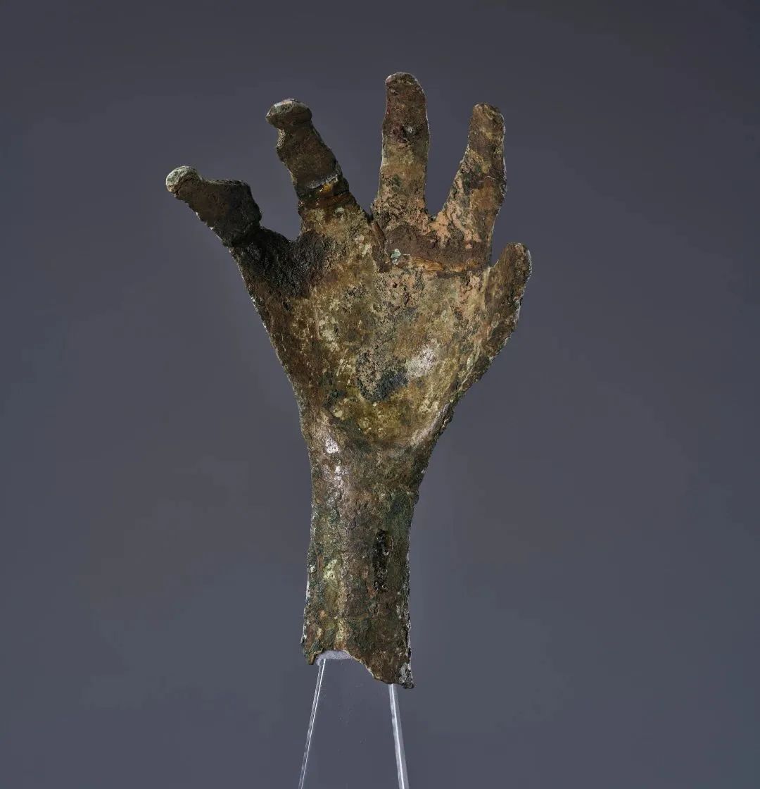 此次到展的明星文物除却前面所说的妇好青铜鸮尊、亚丑钺,还有最神秘的青铜手、“花臂大佬”牛尊、商周铜人形器、陶器界的“小猪佩奇”……