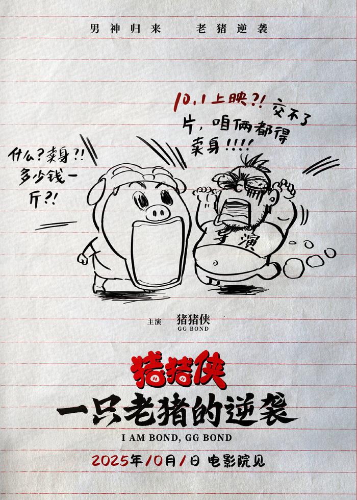跟随现场定档消息的重磅公布,影片紧随其后发布了定档国庆的手绘海报,整体画风十分抽象,画面中导演和猪猪侠的对话更是喜感满满。导演抓狂的表情配合台词:10.1上映?!交不了片,咱俩都得卖身!!!猪猪侠则满脸震惊地回应:什么?卖身?多少钱一斤?!充满了打工人疯癫的精神状态。据悉,本次影片故事也是围绕“打工老猪的逆袭”而展开的,主要讲述了过气演员猪猪爆怀揣着对演艺梦想的执着,一心想要咸鱼翻身的搞笑故事。片中融入了底层打工人追梦的辛酸、演艺圈八卦热点等接近年轻观众生活的话题,给大家带来更深的代入感。初代猪猪侠陪伴着无数人度过了童年美好的时光,近期通过抽象风表情包再度走进大众视野后,让大家对顶流猪更加热情,童年男神本次的回归,不仅承载着一代人的记忆,也唤醒了大家的情感共鸣。