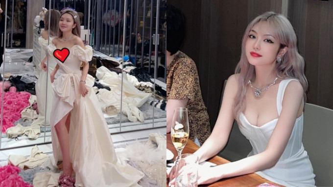 台湾艺人“小猪”罗志祥前女友、内地网红周扬青,在2020年大爆罗志祥热爱多人运动、出轨“蝴蝶姊姊”恺乐,在两岸三地声名大噪。家境富裕的周扬青现时搞网上时装生意搞得有声有色,不时在社交网做生招牌大晒靓相。近日周扬青在社交网贴出多张试礼服的照片,虽然谷胸大骚事业线,又换上多套晚装,不过都不及她身后的“包包墙”吸睛。